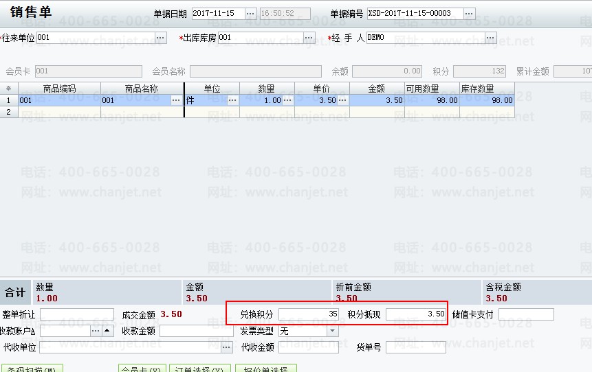 会员卡有储值功能时,可以使用会员卡中的金额进行支付(并且只有会员卡勾选了储值功能时,使用该类型的会员卡时,在销售单上才会出现