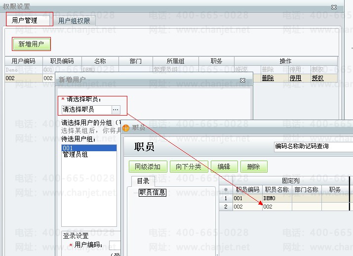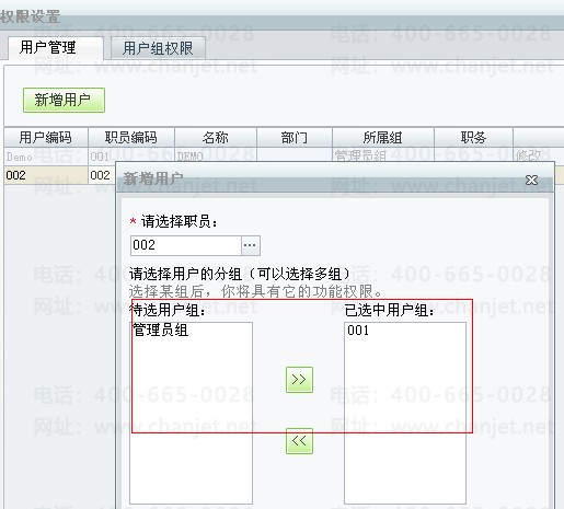 3、添加操作员,并将用户添加到相关的用户组里面,使之拥有该组的所有权限,如图所示: