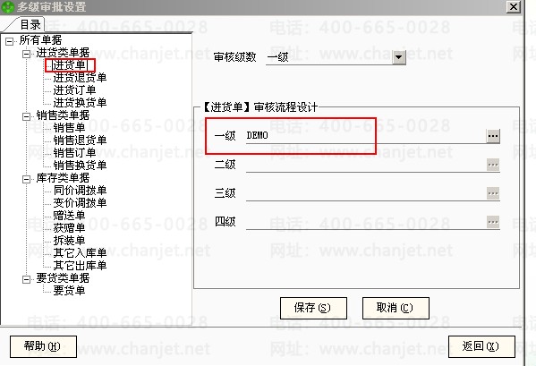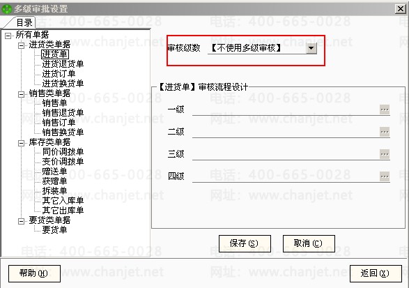 在“审核级数”可以看到,最多能进行四级审核,超过四级软件就不能实现了。