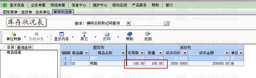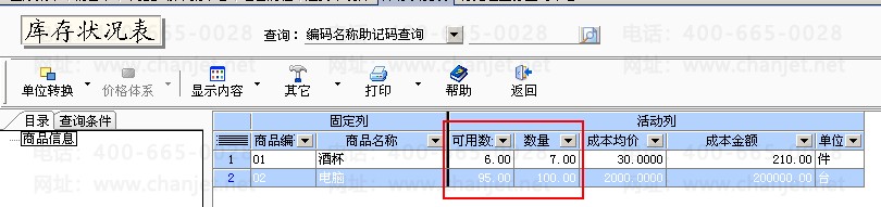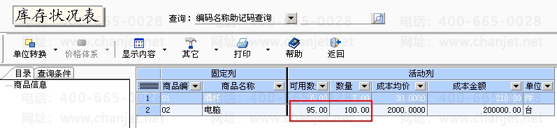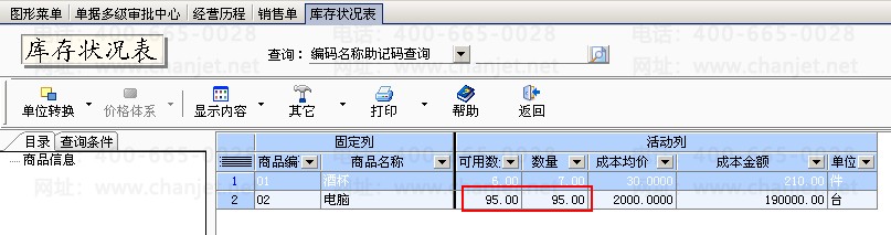 查看库存,在未审核前可以看到,可用数量是变化了的,但数量是没有变化的。