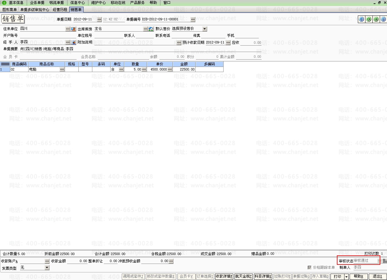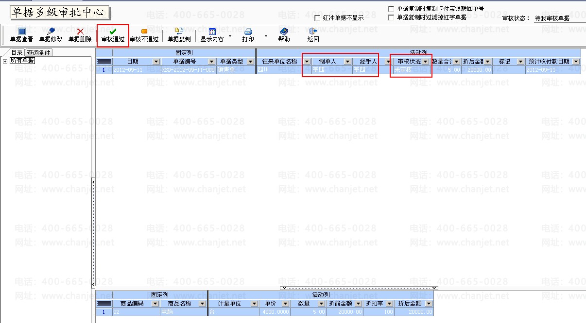 这时我们退回到制单人李四进入软件,可以看到单据已经“审核通过”。
