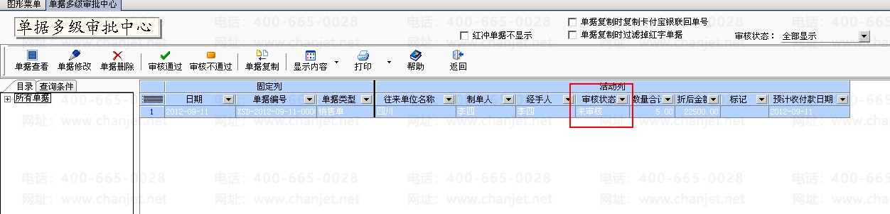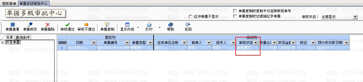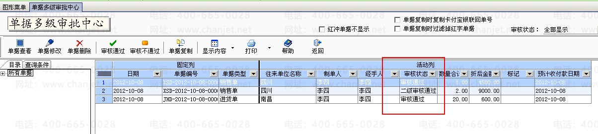 审核完全通过的单据显示的审核状态都是“审核通过”字样,未完全审核通过的都是“几级审核通过”字样。