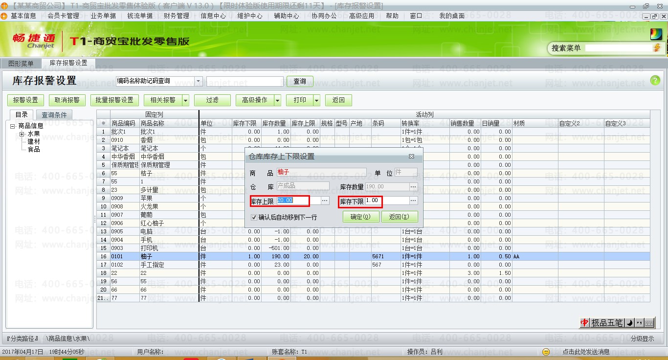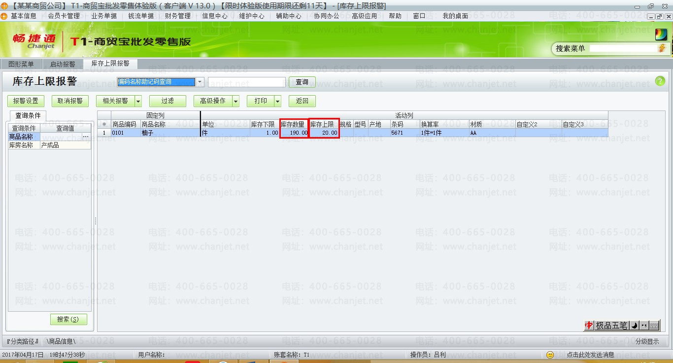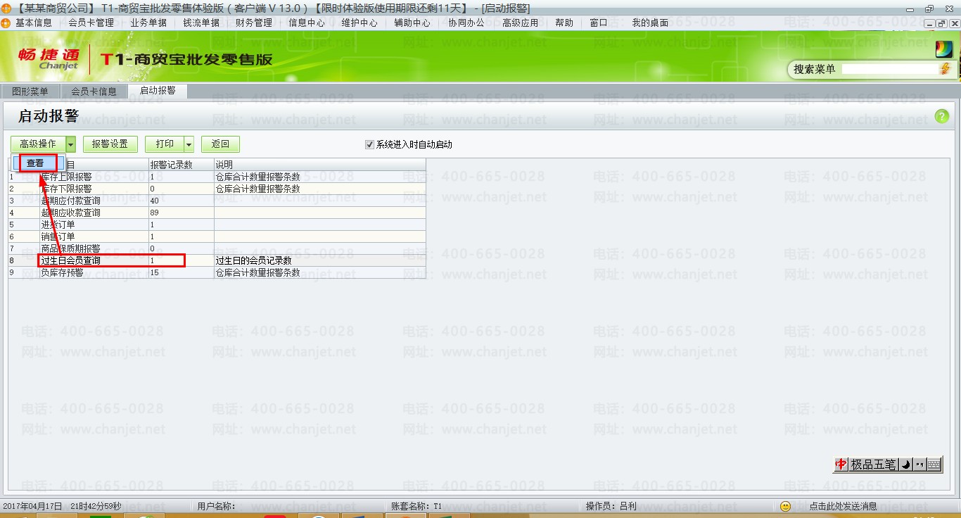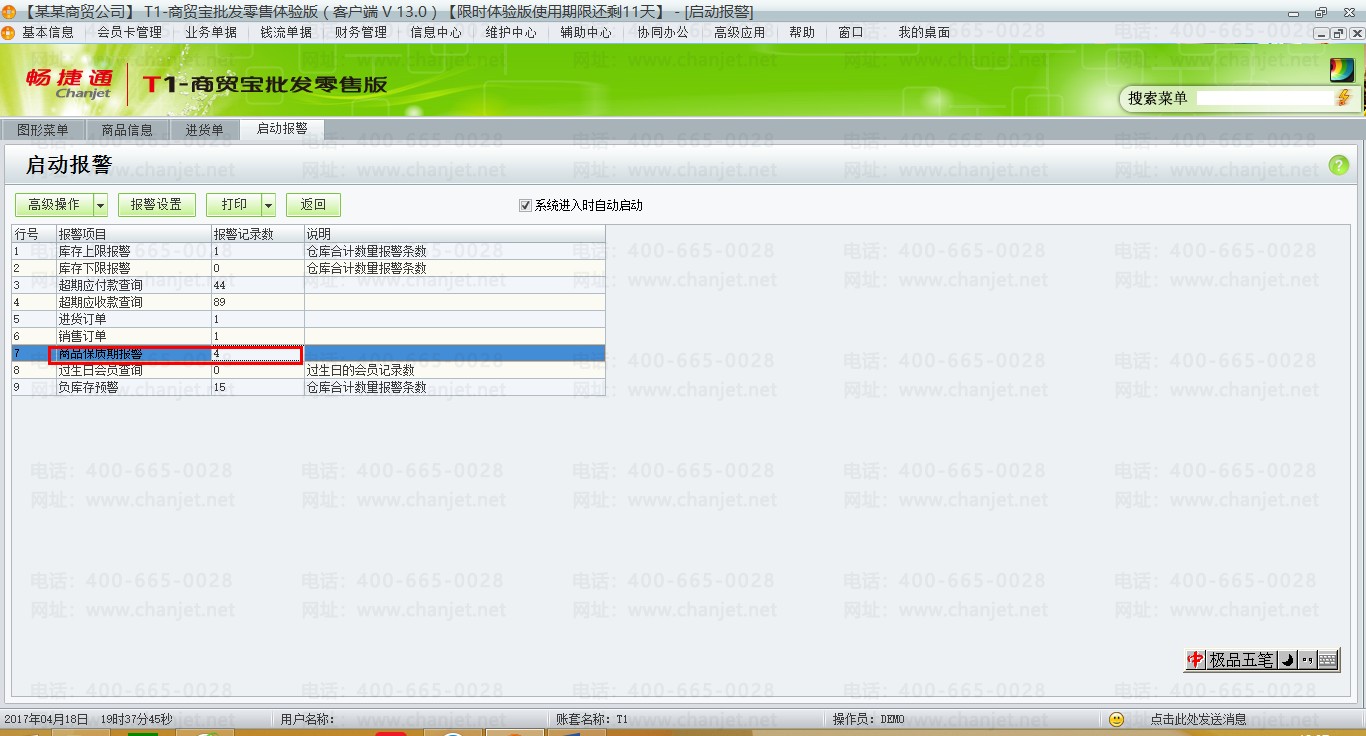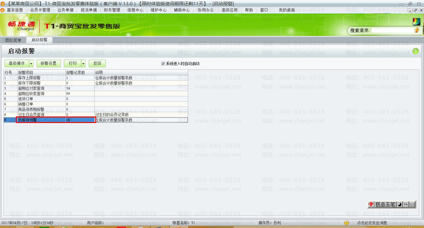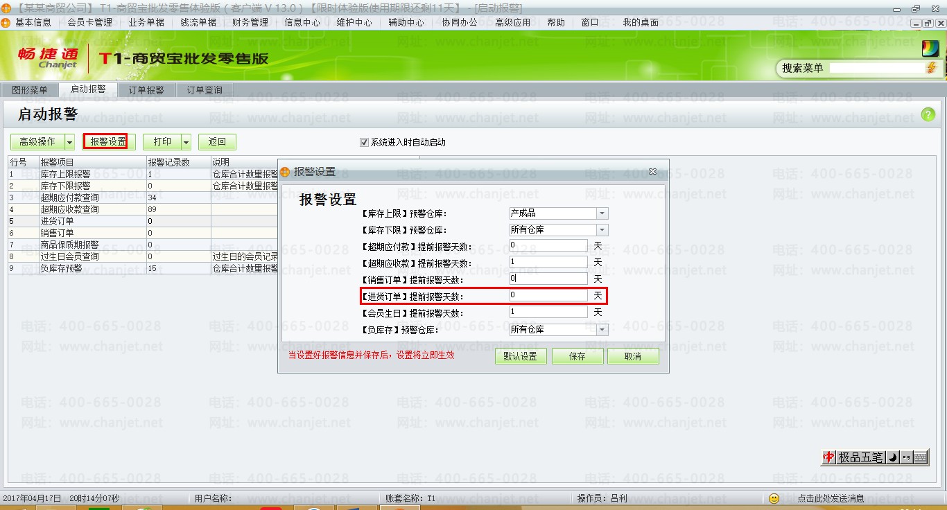 用友T1商贸宝批发零售版13.0报警设置汇总