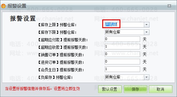 (3)【辅助中心】-【启动报警】-【报警设置】,选择相对应的仓库