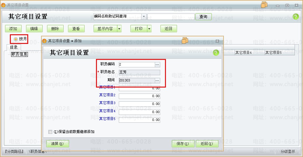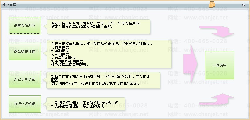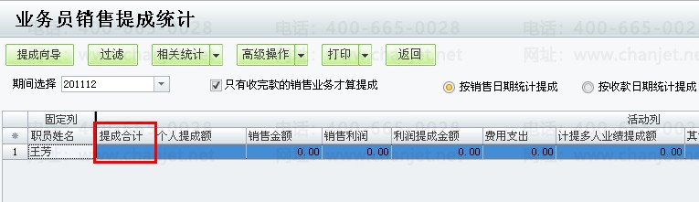 老张是一个个体老板,手下有几个业务员,为了激励业务员更加努力的工作,制定了以下提成方案:业务员的无责任底薪是800元,每月的销售目标为销售利润为5000元;销售提成比率按照以下方法执行,当销售利润超过5000元且不超过10000元的情况下,按销售利润的10%提成,当销售利润超过10000时,按销售利润的15%提成;另外,销售利润每满10000元,则额外奖励业务员300元。老张目前使用商贸宝批发零售版软件,想通过软件中的业务员销售提成功能来计算每月手下员工的工资情况。