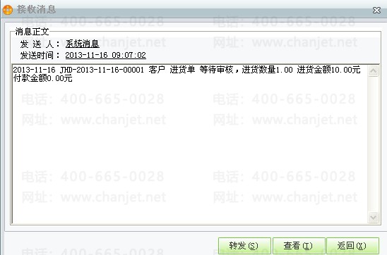 点击“你有1条新消息”,就会有提示未审核的进货单信息等待审核