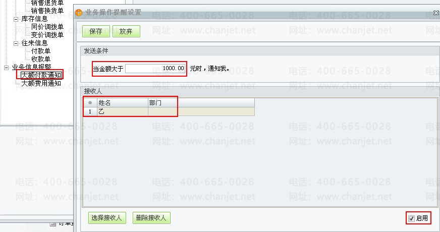 2、业务信息报警(大额付款通知,大额费用通知)