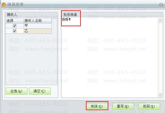 我们软件中辅助中心下的协同消息是对发送消息的配置和管理,发送消息是指同一服务器下不同客户端可以互发消息