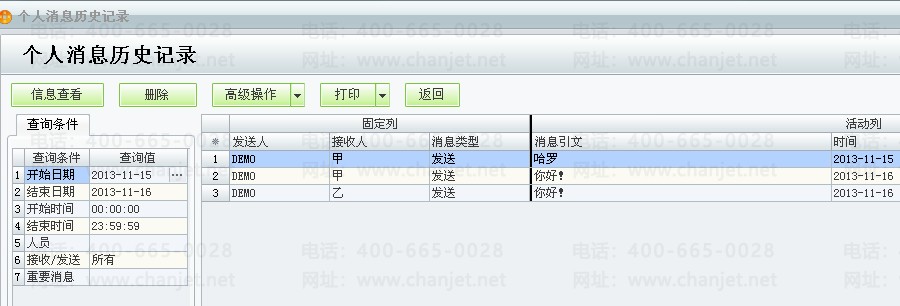查看登录软件的该操作员所以的消息历史记录