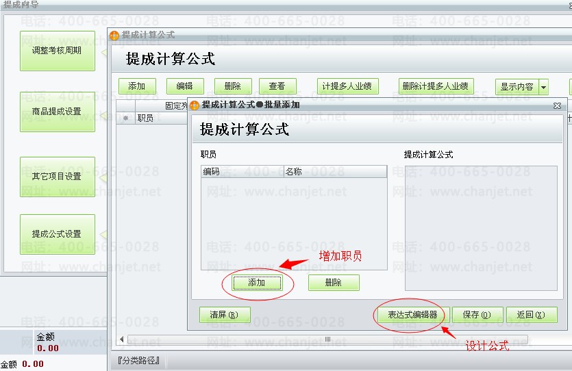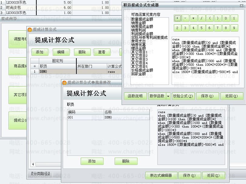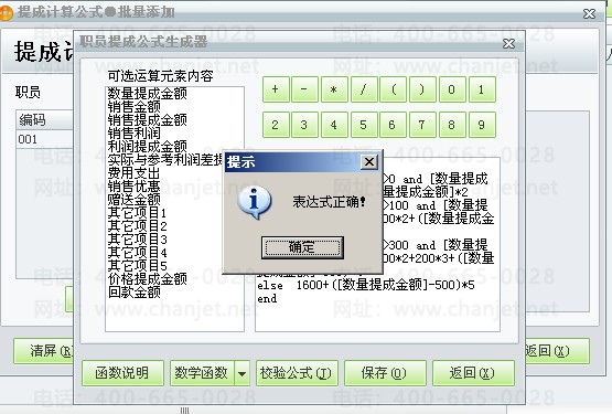 公司有一套商贸宝批发零售版软件,在业务员提成向导中,如何设置提成公式,以便软件自动计算每个业务员的提成金额。
