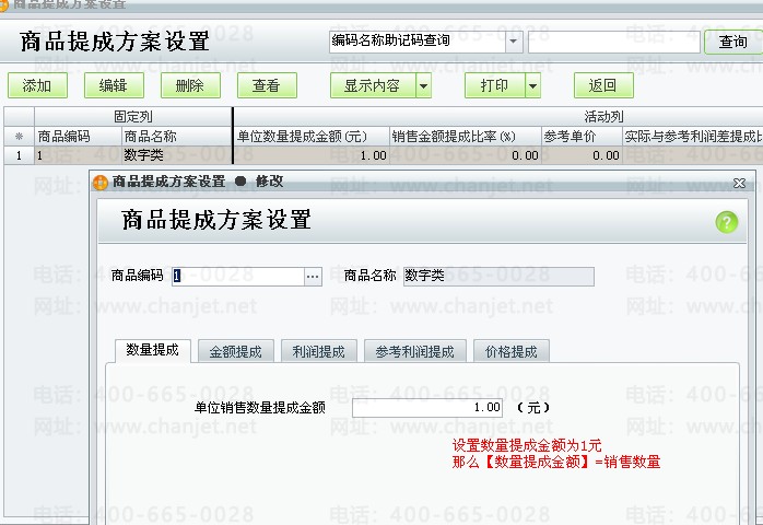 设置所有商品的单位数量提成金额为1元