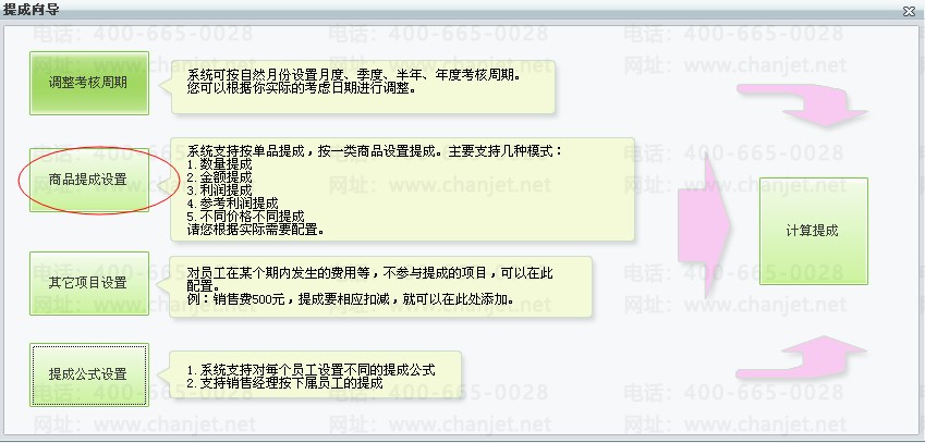 依次打开“业务员提成向导”—“商品提成设置”