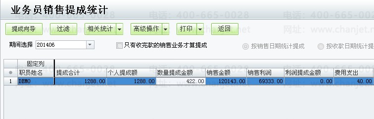 4)查看业务员提成统计