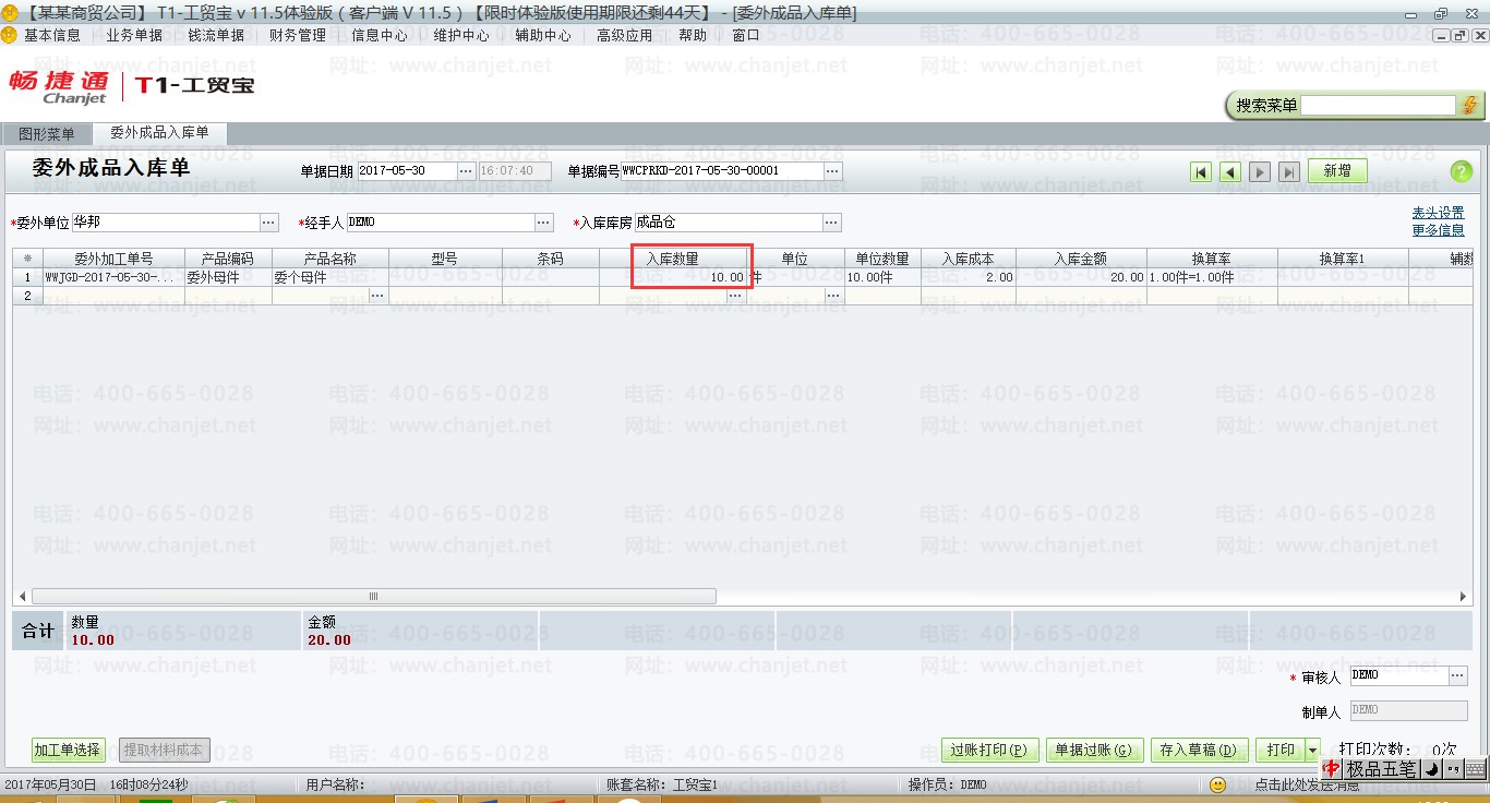 (3)委外加工完成后,填制委外产成品入库单