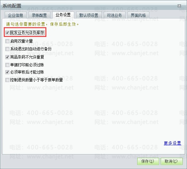 (2)【维护中心】-【系统配置】-【业务设置】,勾选【批发业务允许负库存】。