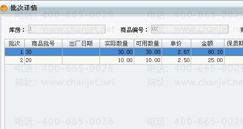 以上操作过程中涉及到的商品比较少,操作、查询都比较简单,当商品数量比较多时,由于是用不同的批次表示不同的规格型号,因此查询库存时会,查询总数相对繁琐,但是商品库存明细情况却很清晰。