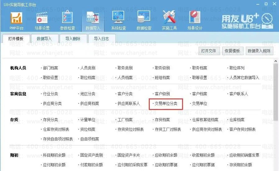 可查看导入日志,重新登录U8企业应用平台,即可看到刚刚导入成功的交易单位分类档案。