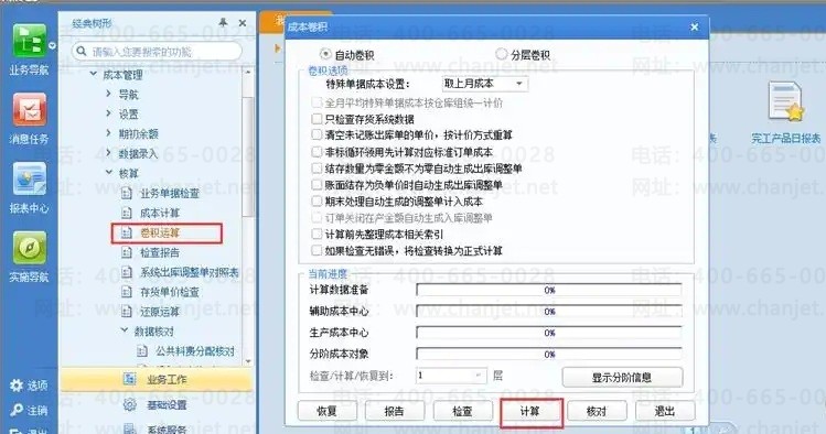2、【成本管理】-【核算】-【成本计算】或【成本管理】-【核算】-【卷积计算】,点“计算”