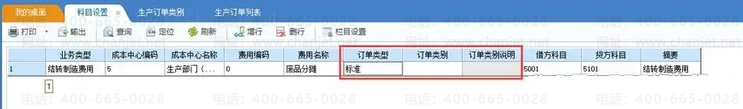 如果启用了生产订单模块,还可以按订单类型和订单类别设置要带出的科目和摘要