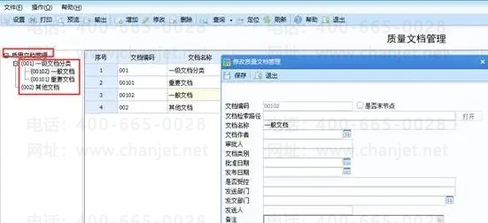2、打开路径之后,可以设置文档分类:选择质量文档管理点击增加的是一级分类,选择对应的一级分类增加,增加的是二级分类。末级分类需要勾选【是否末节点】