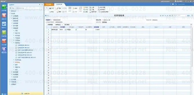 1、打开在库品待检表,勾选需要检验的记录行点击报检,生成在库品报检单并审核