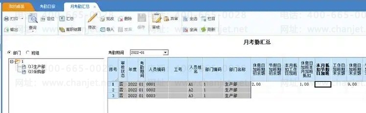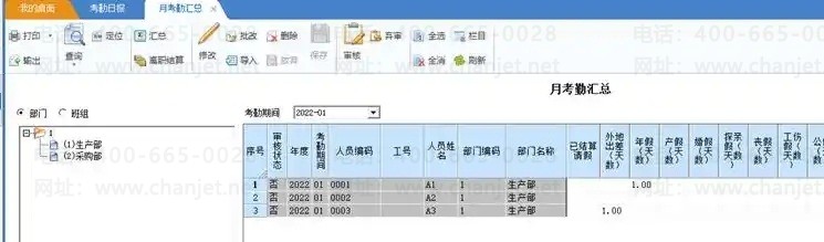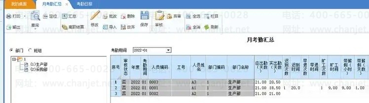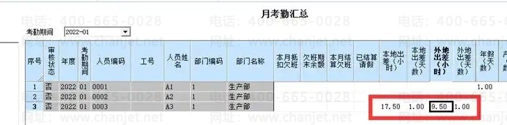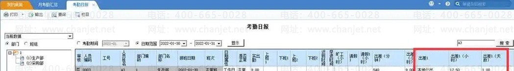 如A1人员本月有迟到、早退,加班、请假、出差等数据可以直接到考勤日报里查看明细记录,