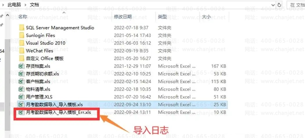 注意:导入失败会提示:“部分数据或全部数据导入失败,请查看导入失败日志文件”,其中导入失败日志文件存放于导入模板的路径下,如下图