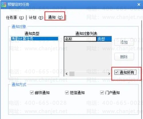 c) 通知所有:选择时,对所有相关的通知对象进行定时任务通知。