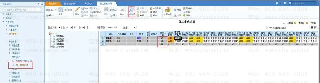 1、根据考勤人员里的排班方式和默认班次等设置进行排班,生成员工排班计划;