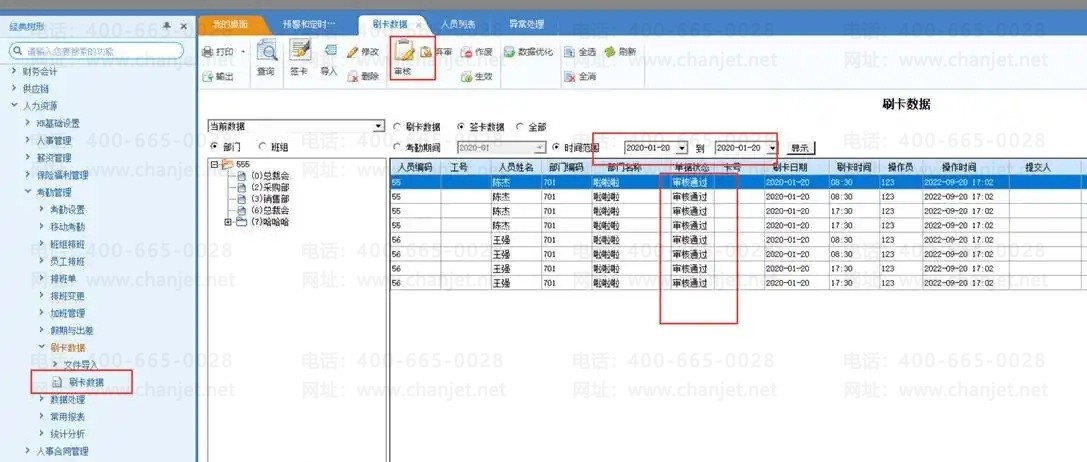 ·签卡:指定日期时间、签卡原因,对所有选择的人员各补一条刷卡记录。