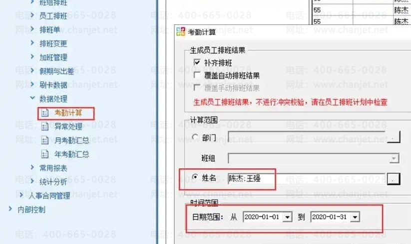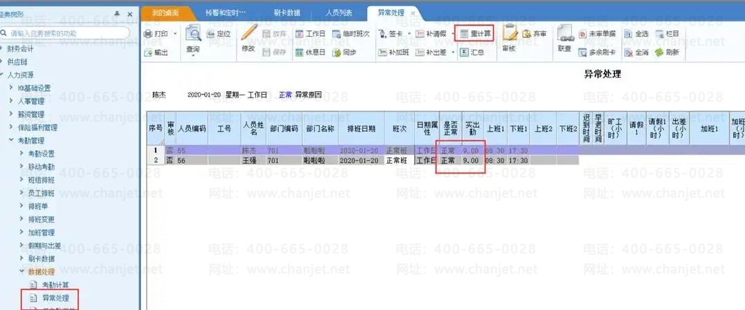 (二) 考勤管理-数据处理-异常处理界面点重计算