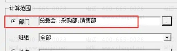 5) 计算范围:分为两种方式:部门和班组、人员。可多选,如果为空则代表全选。