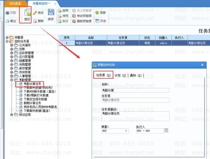 2. 选择定时任务源-考勤管理内的考勤计算任务;