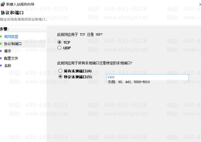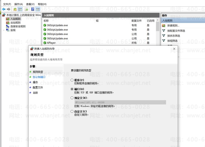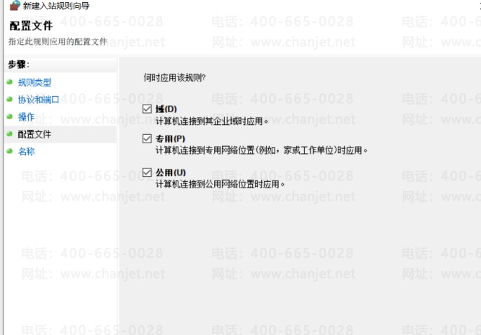 输入端口号-允许连接-勾选域,专用,公用-输入名称即完成。