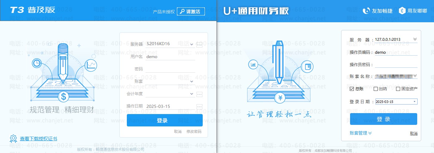 左侧用友T3/ 右侧通用财务 ~跟孪生兄弟似的