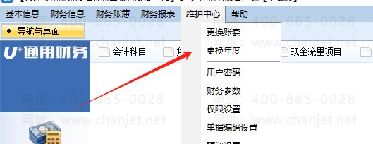 5、导入T3数据完成后,登录通用财务,维护中心-更换年度, 即可查其他年度的数据了