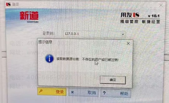 登录U8时提示读取数据源出错:不存在的用户或已被注销! 如下图
