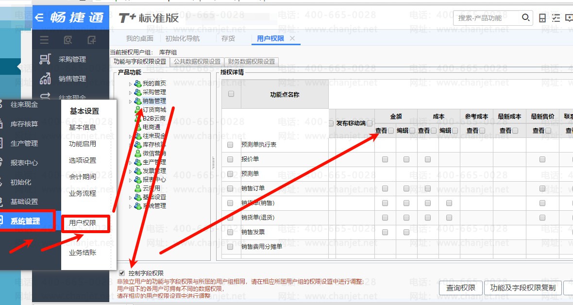 畅捷通T+如何设置操作员不可以看到单价、金额、成本等字段?