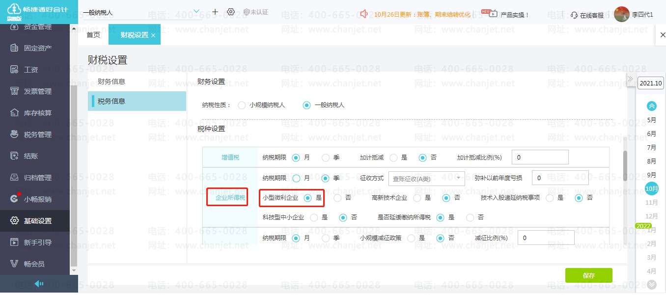 ①、在好会计中,需要在【设置】-【财税设置】-【税务设置】模块内设置为【小型微利企业】