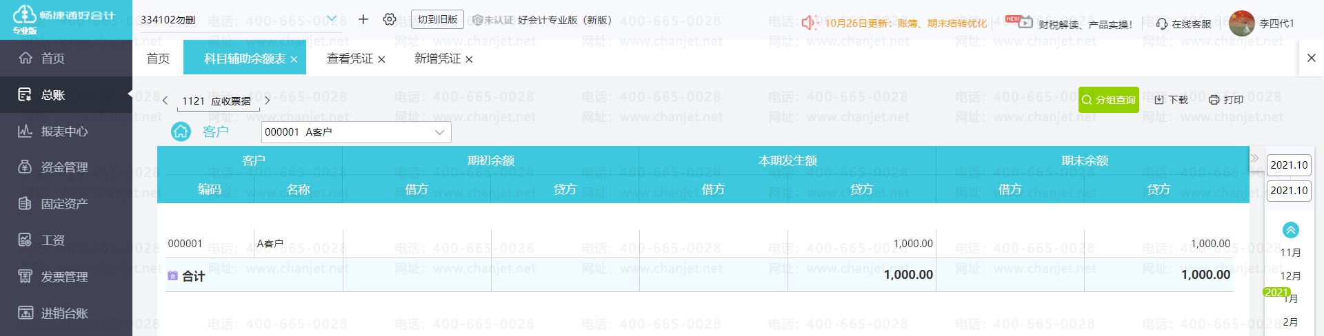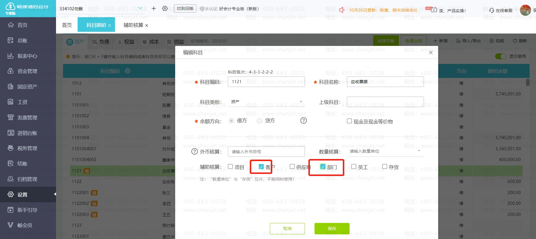 例如:可以将应收账款科目同时设置为往来核算与部门核算。